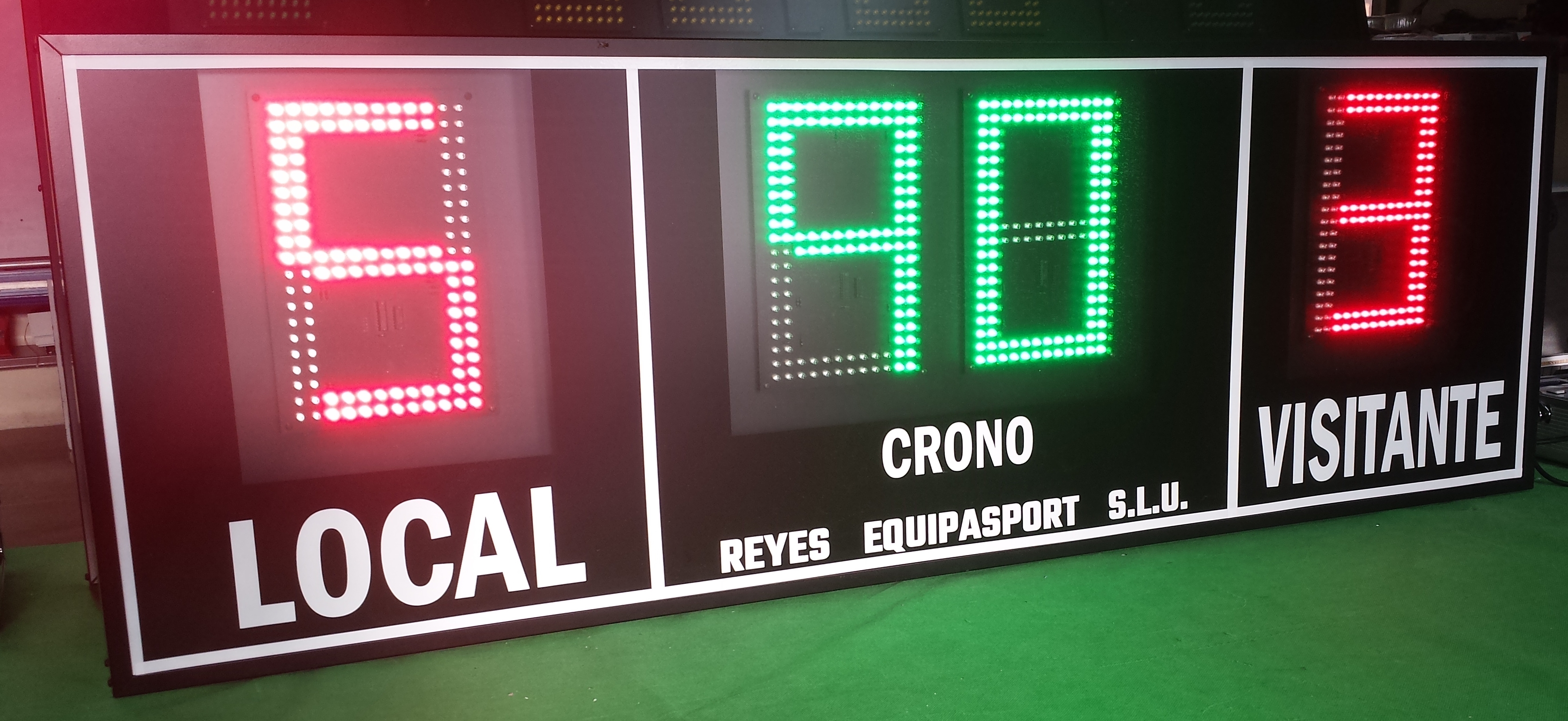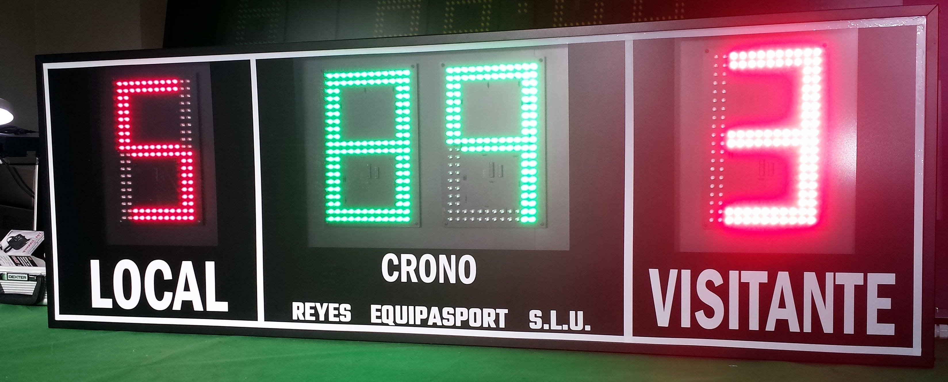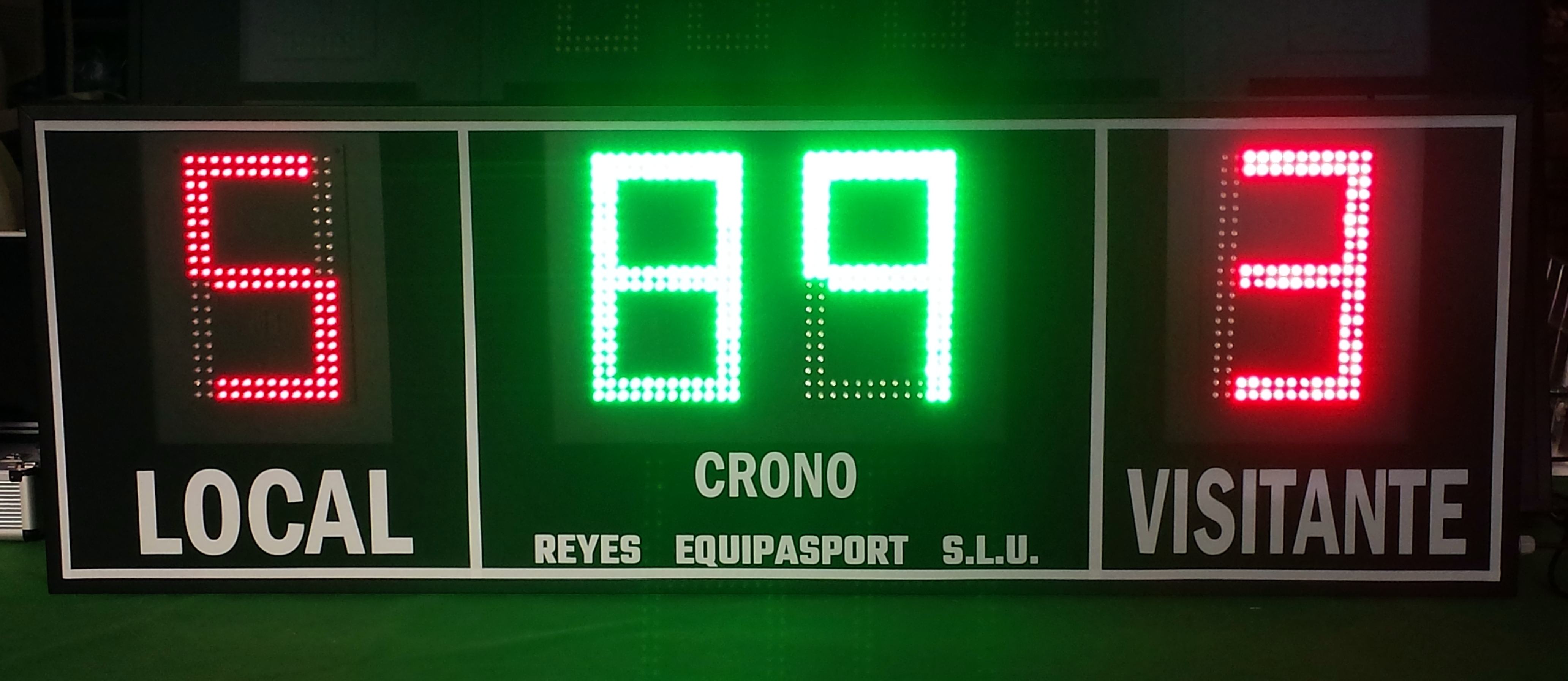 - Dos dígitos de 27 cm. de altura para puntuación (uno para equipo local y uno para el equipo visitante) con cuenta de 0 a 9 puntos.