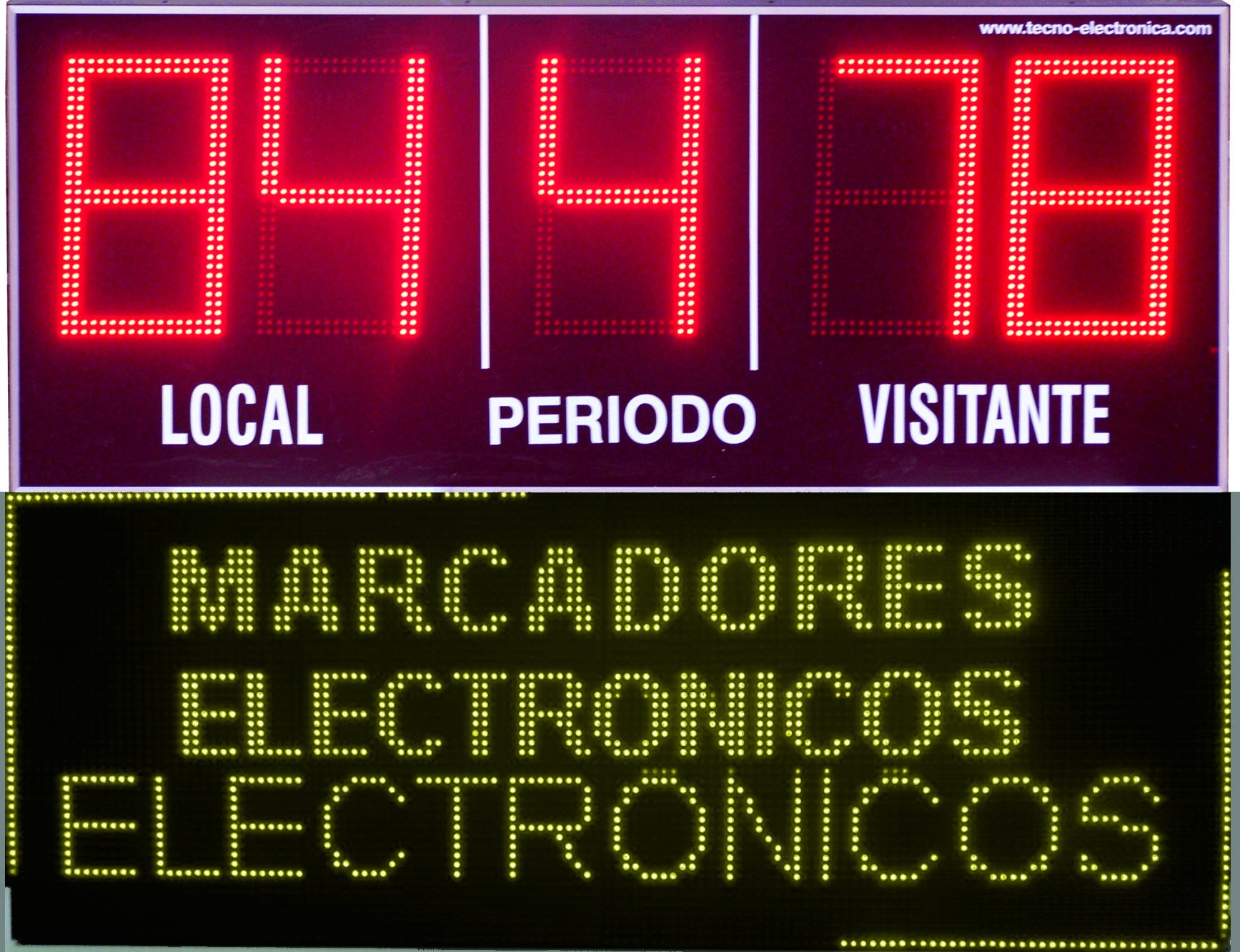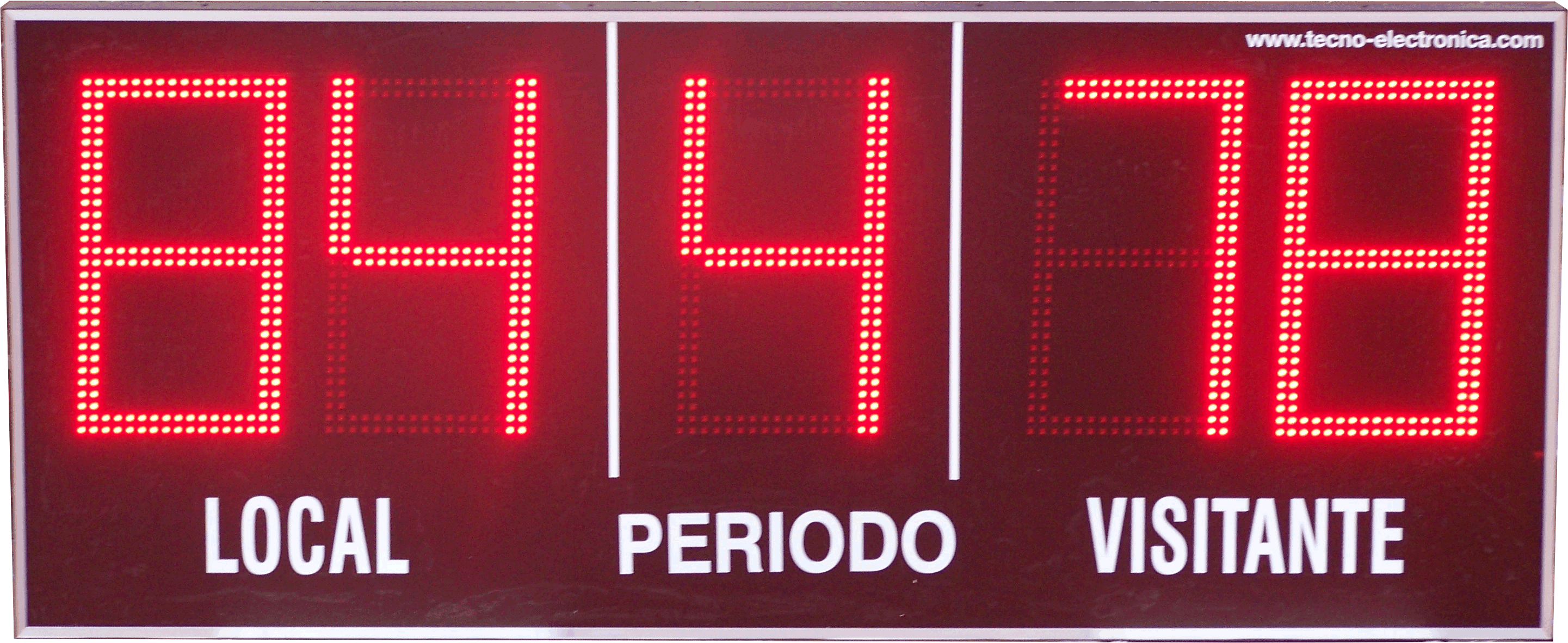 • Cuatro dígitos de 50 cm de altura para tanteo con cuenta desde 0 hasta 99 (dos para cada equipo).